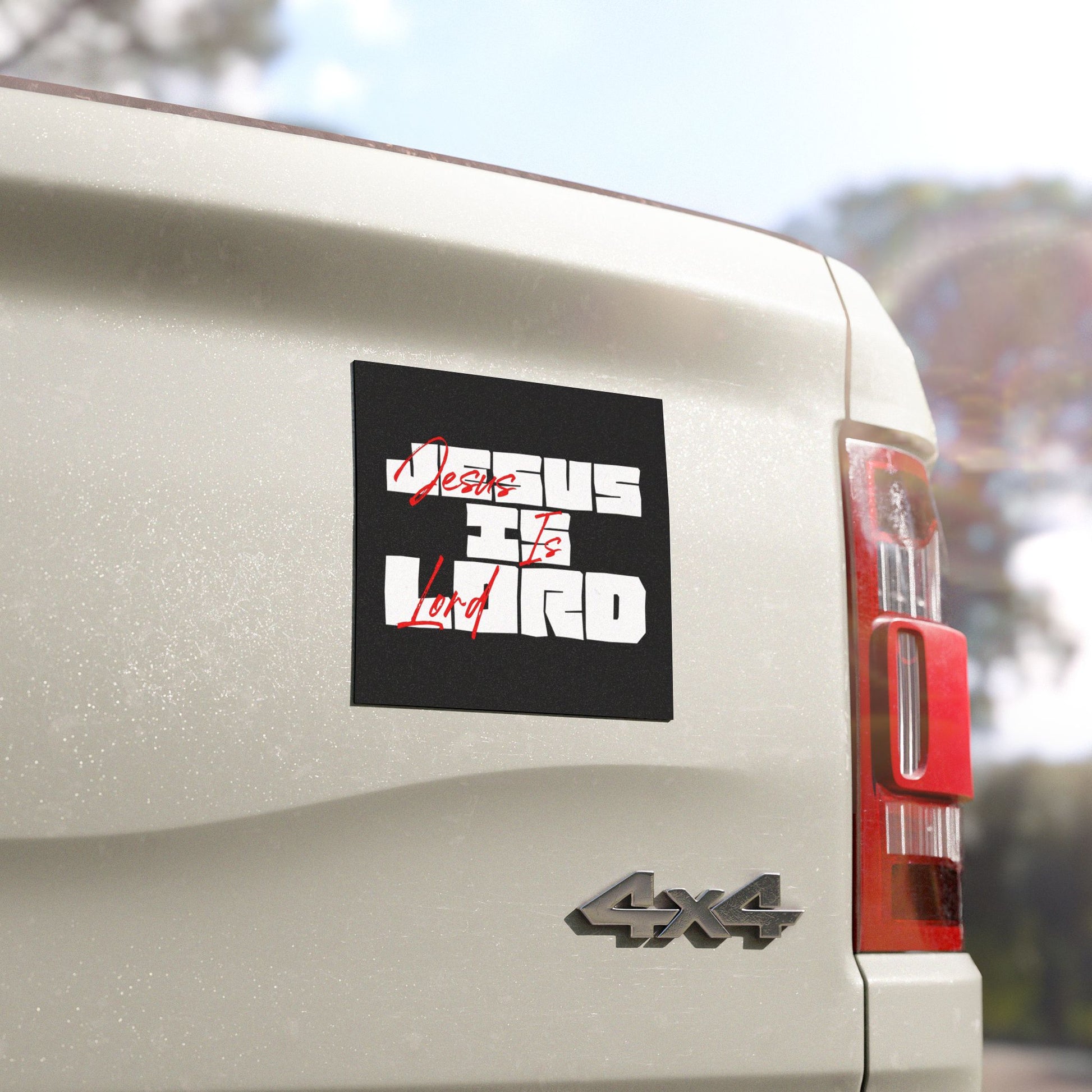 Show your faith and devotion with this JESUS IS LORD car magnet. Available in 2 sizes, these all-weather durable magnets are perfect for believers who want to display their religious beliefs proudly on their vehicles. Great for Easter, Christmas, and everyday reminders of faith.