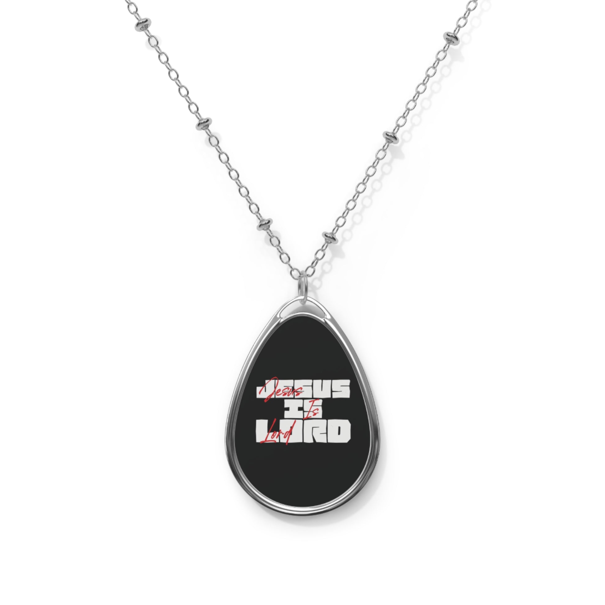 This oval necklace features the phrase 'JESUS IS LORD' on a vibrant, glossy pendant. Perfect for religious individuals looking to showcase their faith in a stylish way. Ideal for Easter, Christmas, and as a gift for a believer in your life. Great for everyday wear.